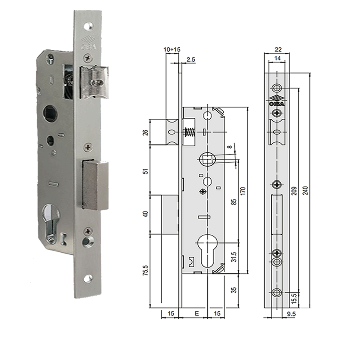 La cerradura Cisa 44661 es una cerradura vertical para embutir para puertas metálicas. La mano es reversible. El picaporte es reversible y regulable 10÷ 15 mm.